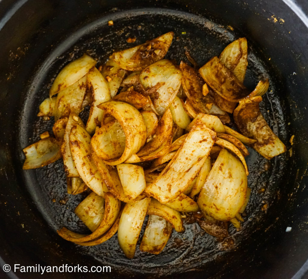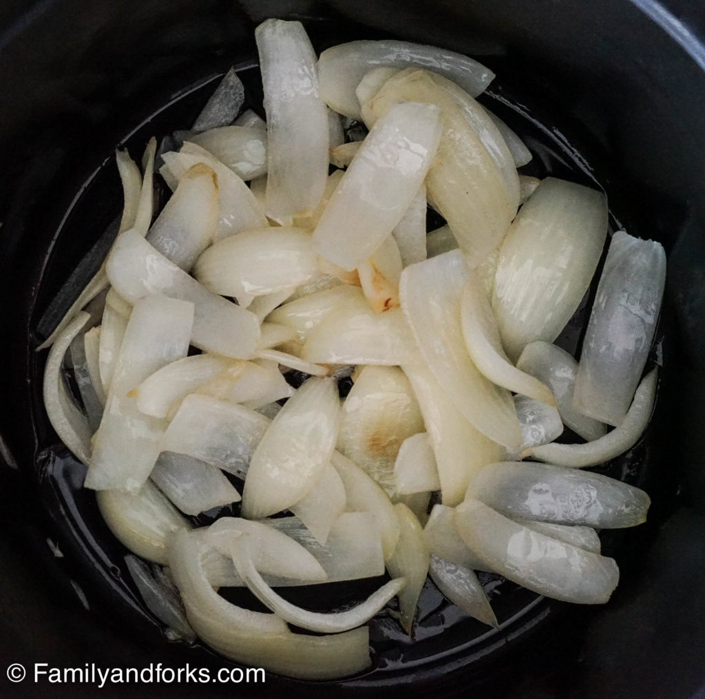 - Add onion pieces and toss with the oil to coat. Cook over medium heat until the onion begins to soften, about 10 minutes. Add garlic and cook for 1 minute.